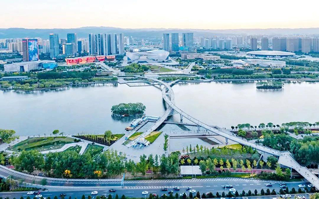 ▌ 东向俯瞰汾河,碧波蜿蜒如翡翠绸带,晨曦中河面泛金、暮色里落霞铺锦,一日光影流转皆成风景;